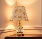 Crystal Glass Bedside Lamp with Floral Shade