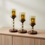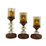 Wood Glass Metal Candle Set